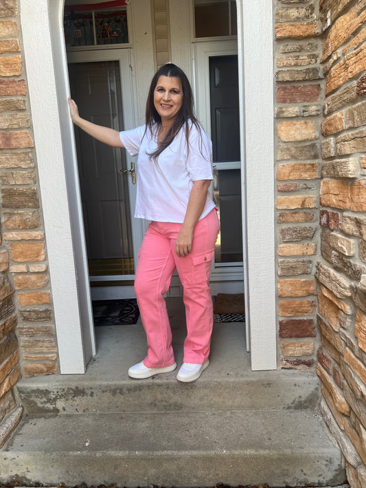 Judy Blue Straight Fit Pink Cargos
