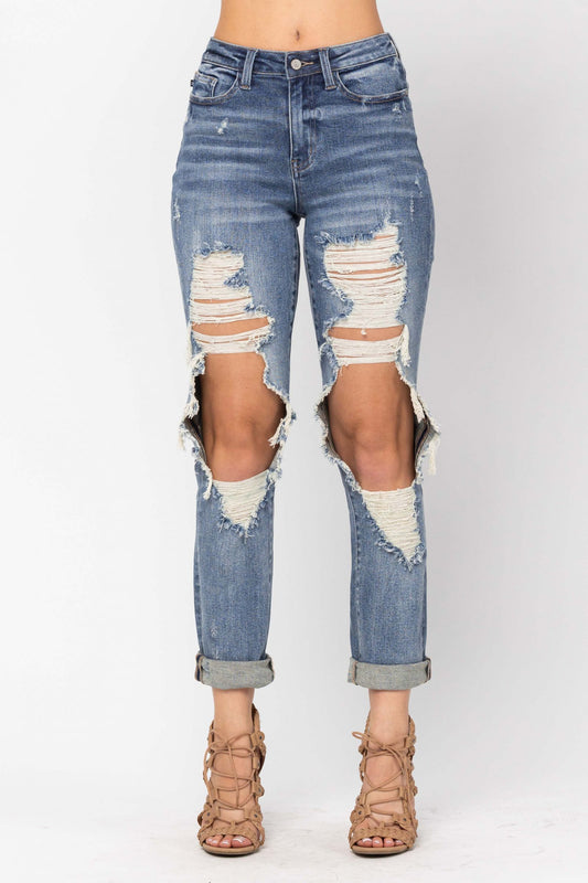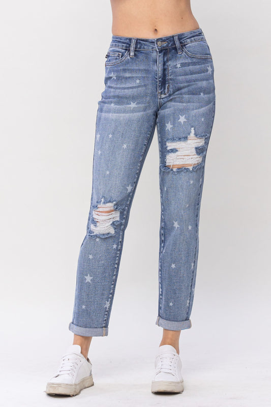 Judy Blue Boyfriend Mid Rise Star Crossed Destroy & Roll Cuffed