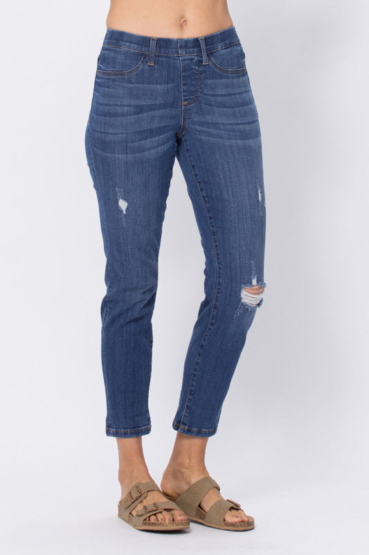 Judy Blue Pull on Boyfriend Mid-Rise Destroyed Jeggings